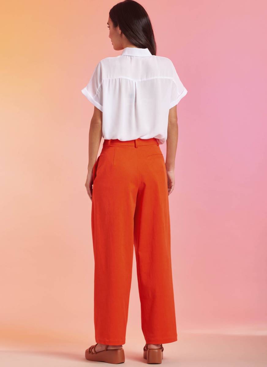 Elegante Stoffhose mit Falten im Vorderteil und geformtem Bund. Die Hose verfügt über einen Hosenschlitz mit Reißverschluss im Vorderteil, Taschen in der Seitennaht, Abnäher im Rückenteil sowie eine einfache Paspeltasche im Gesäß.