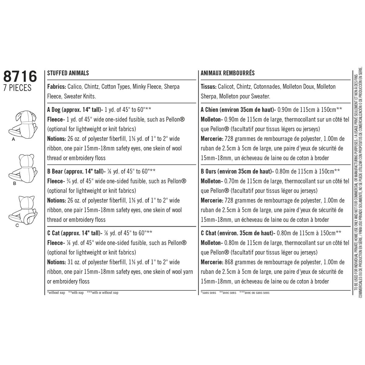 Simplicity Schnittmuster Babys Stofftiere 8716.OS