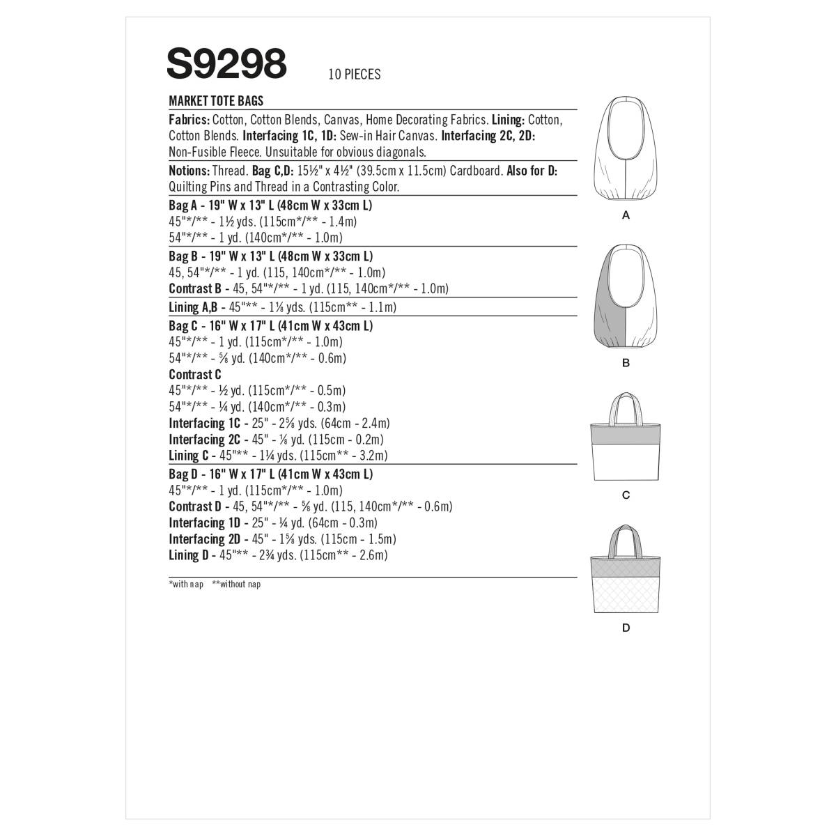 Simplicity Schnittmuster Damen Accessoires Taschen Shopper #9298.OS