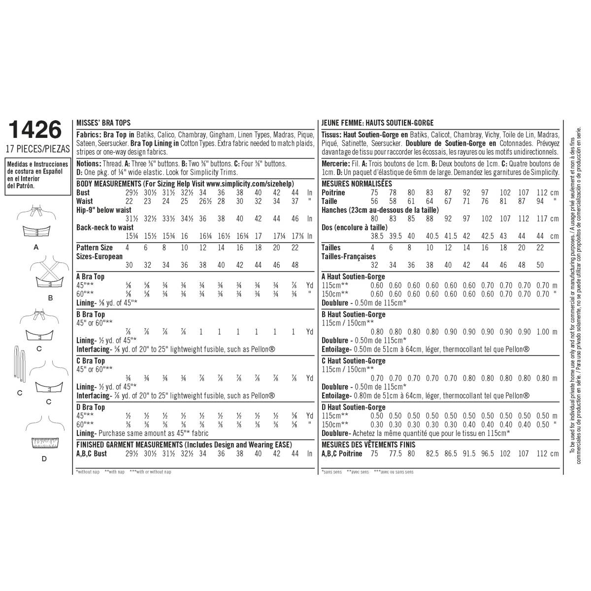 Simplicity Schnittmuster Damen Bustier Tops #1426.D5 Gr. 30-38