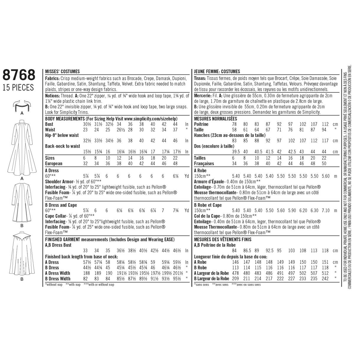 Simplicity Schnittmuster Damen Fantasy Cosplay-Kostüm #8768.H5 Gr. 32-40