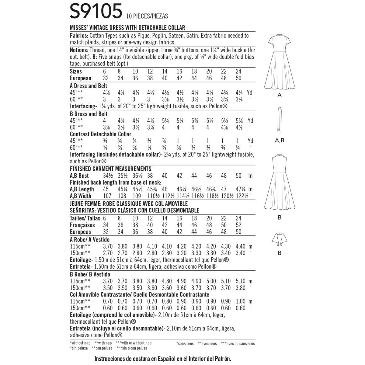 Simplicity Schnittmuster Damen Kleid mit abnehmbarem Kragen #9105.U5 Gr. 42-50
