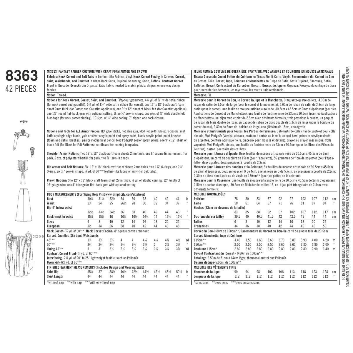 Simplicity Schnittmuster Damen Ranger-Fantasiekostüm mit Rüstung und Krone #8363.R5 Gr. 40-48