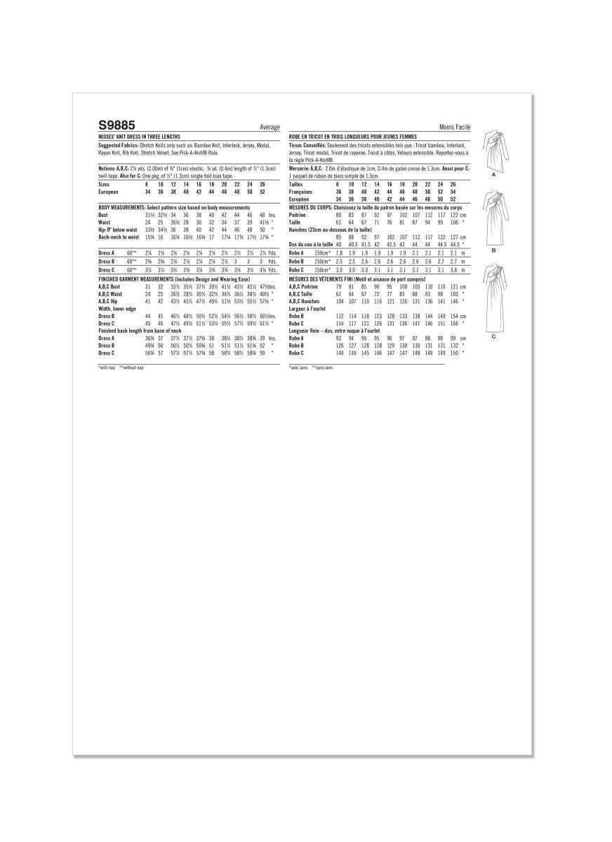 Entdecke das trendige Schnittmuster für ein Kleid! Dieses Schnittmuster bietet vielseitige Möglichkeiten: Ein schulterfreies Kleid mit seitlichen Raffungen, wahlweise mit oder ohne Ärmel, und verschiedenen Längen. Blickfang: der asymmetrische Saum bei Ansicht A. Ideal für Stretchstoffe wie Interlock, Jersey.