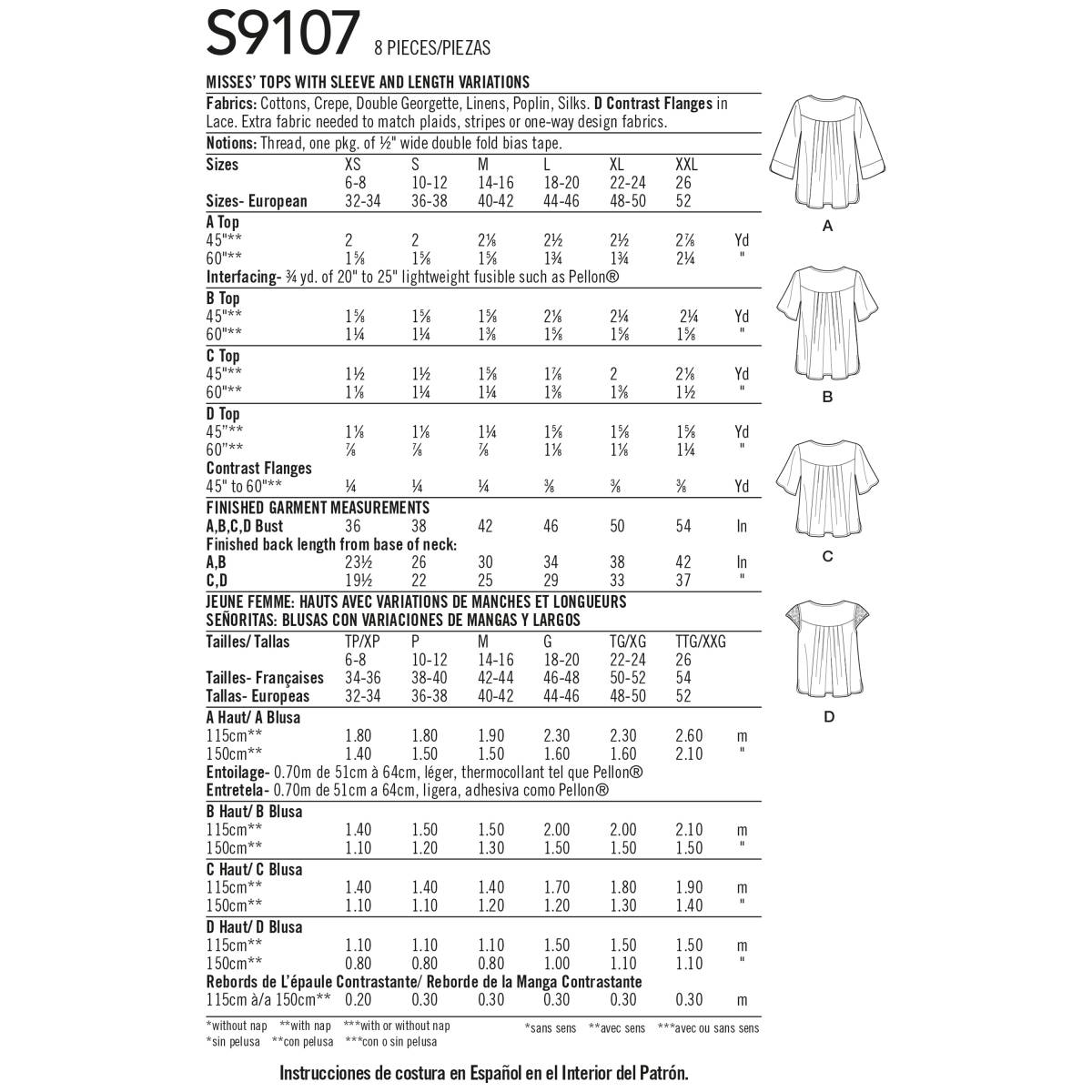 Simplicity Schnittmuster Damen Top mit Ärmelvariation #9107.A