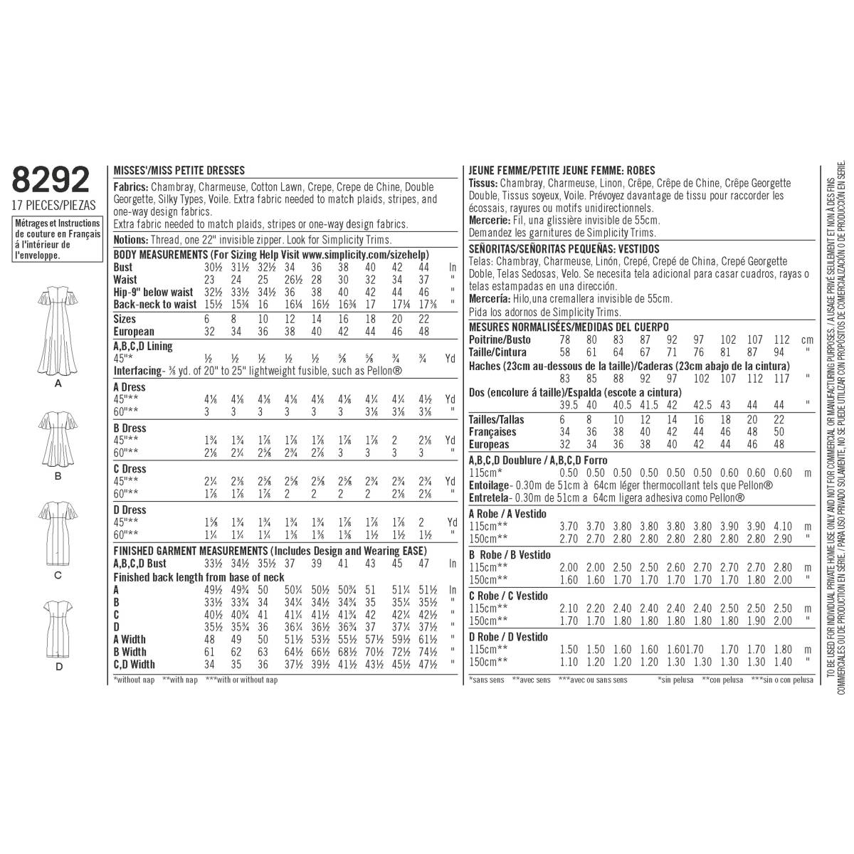 Simplicity Schnittmuster Damen Volant-Kleider #8292.R5 Gr. 40-48