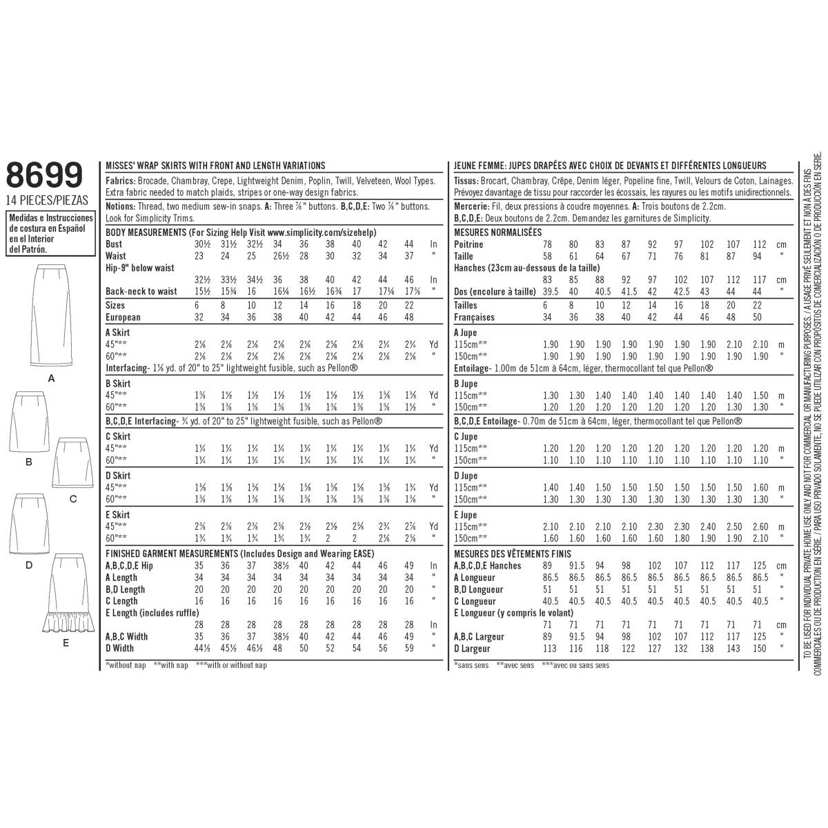 Simplicity Schnittmuster Damen Wickelrock #8699.R5 Gr. 40-48