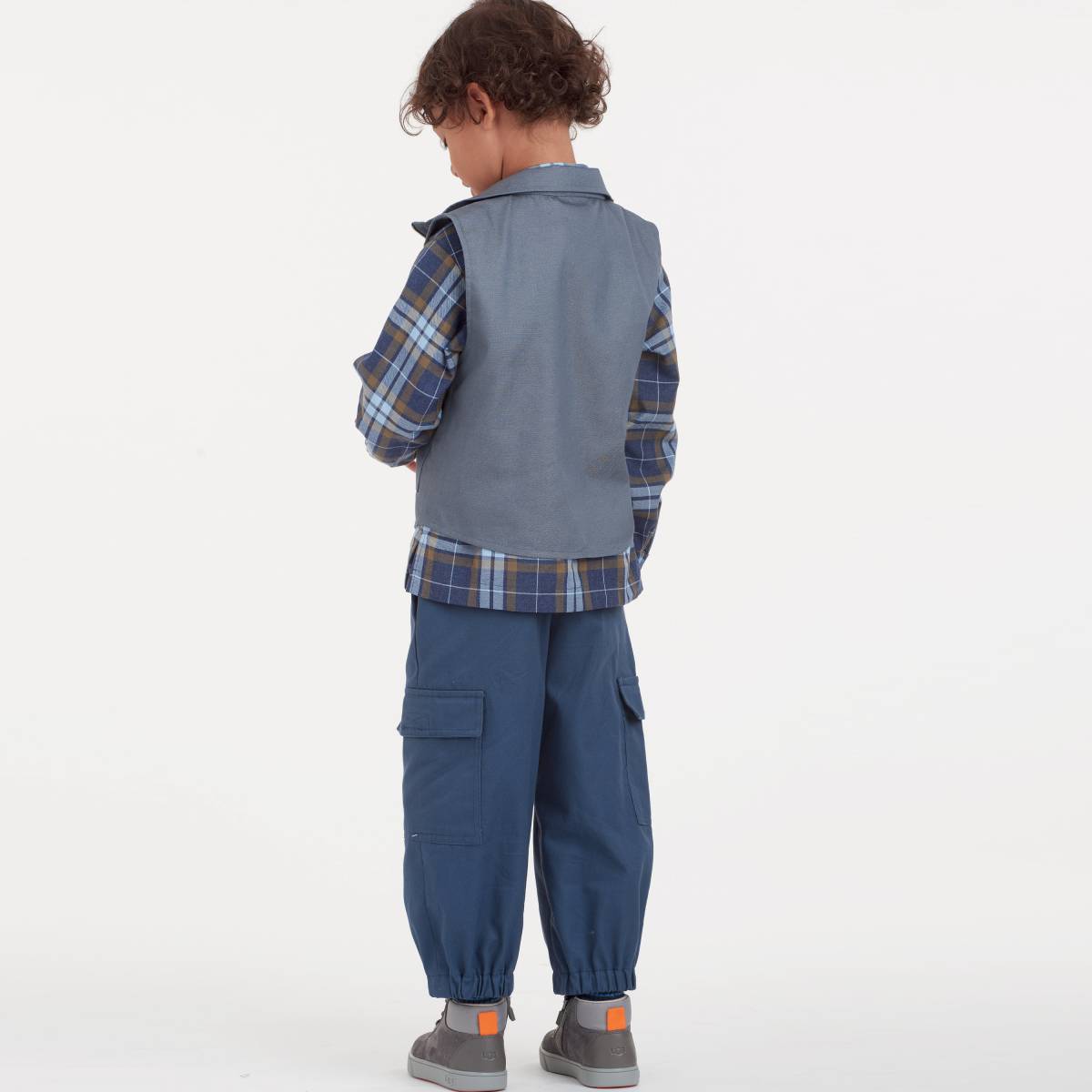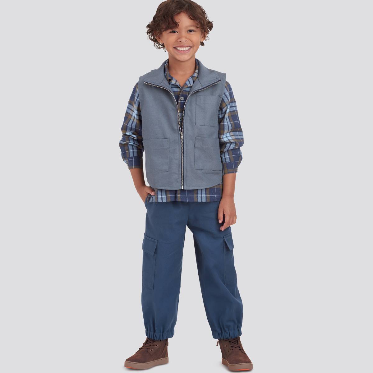 Langarmhemd für Jungen, Weste mit Reißverschluss und Kragen, Hose mit Cargotaschen und elastischem Saum am Knöchel.