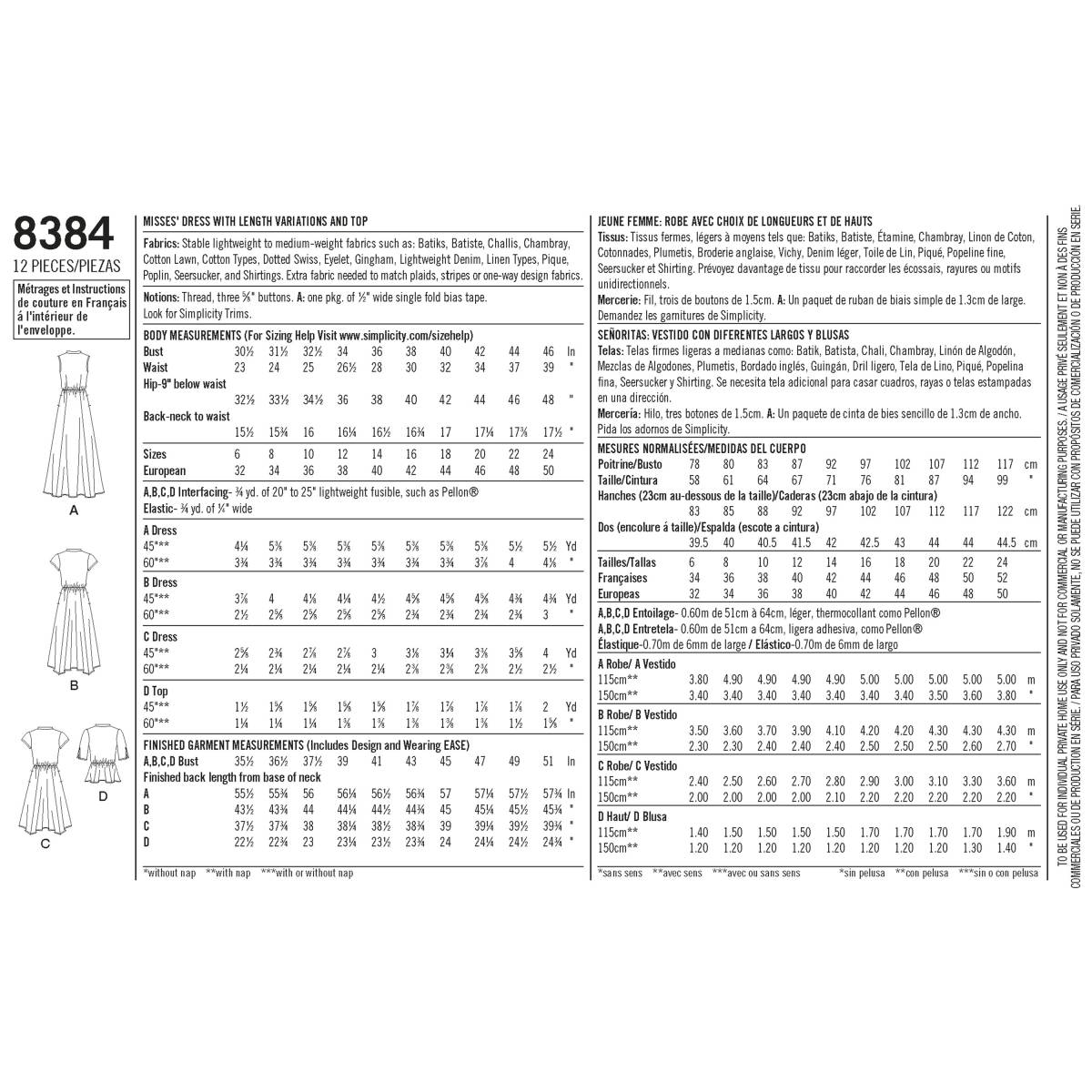 Simplicity Schnittmuster-Set Damen Kleid Top Shirt #8384.U5 Gr. 42-50