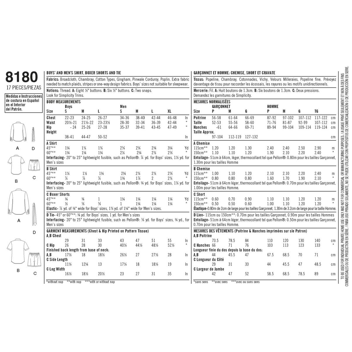 Simplicity Schnittmuster-Set Herren Jungen Hemd Shorts Krawatte #8180.A