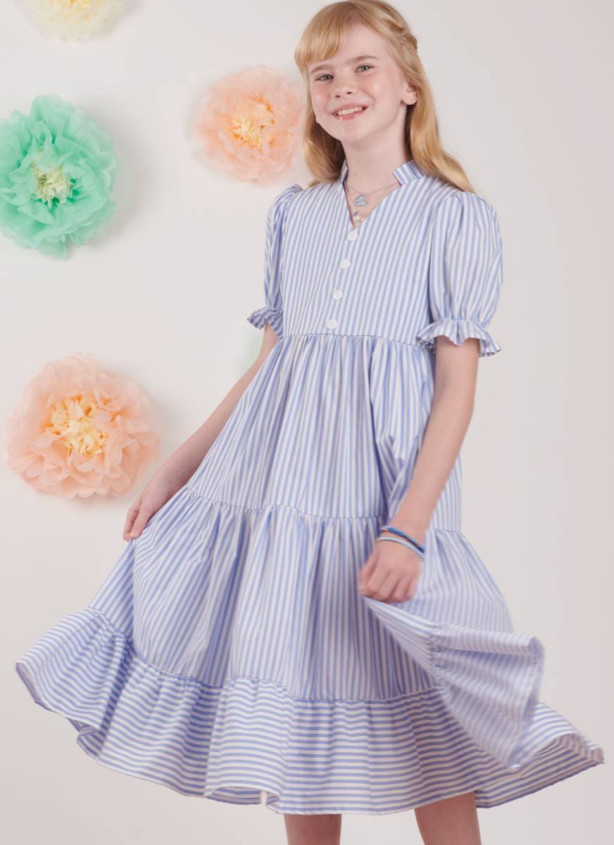 Simplicity Schnittmuster-Set Mädchen Hemdblusenrüschenkleider mit V-Ausschnitt #9900.K5 Gr. 7-14 Jahre