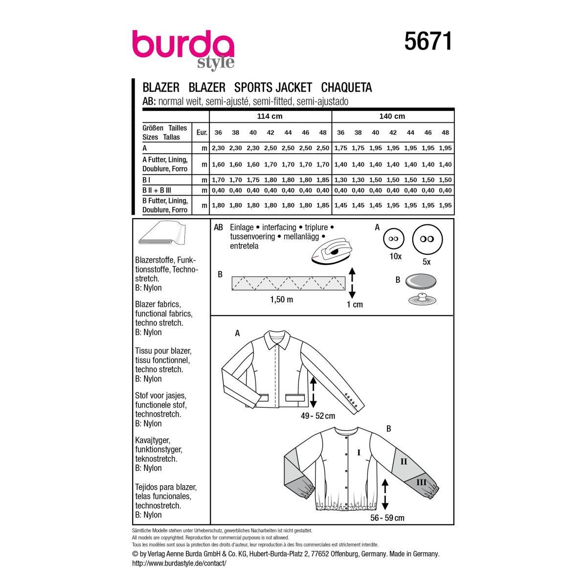 Blazer + lightweight jacket | BURDA | Gr: 36-48 | Level: 3