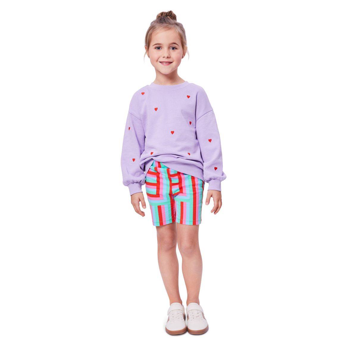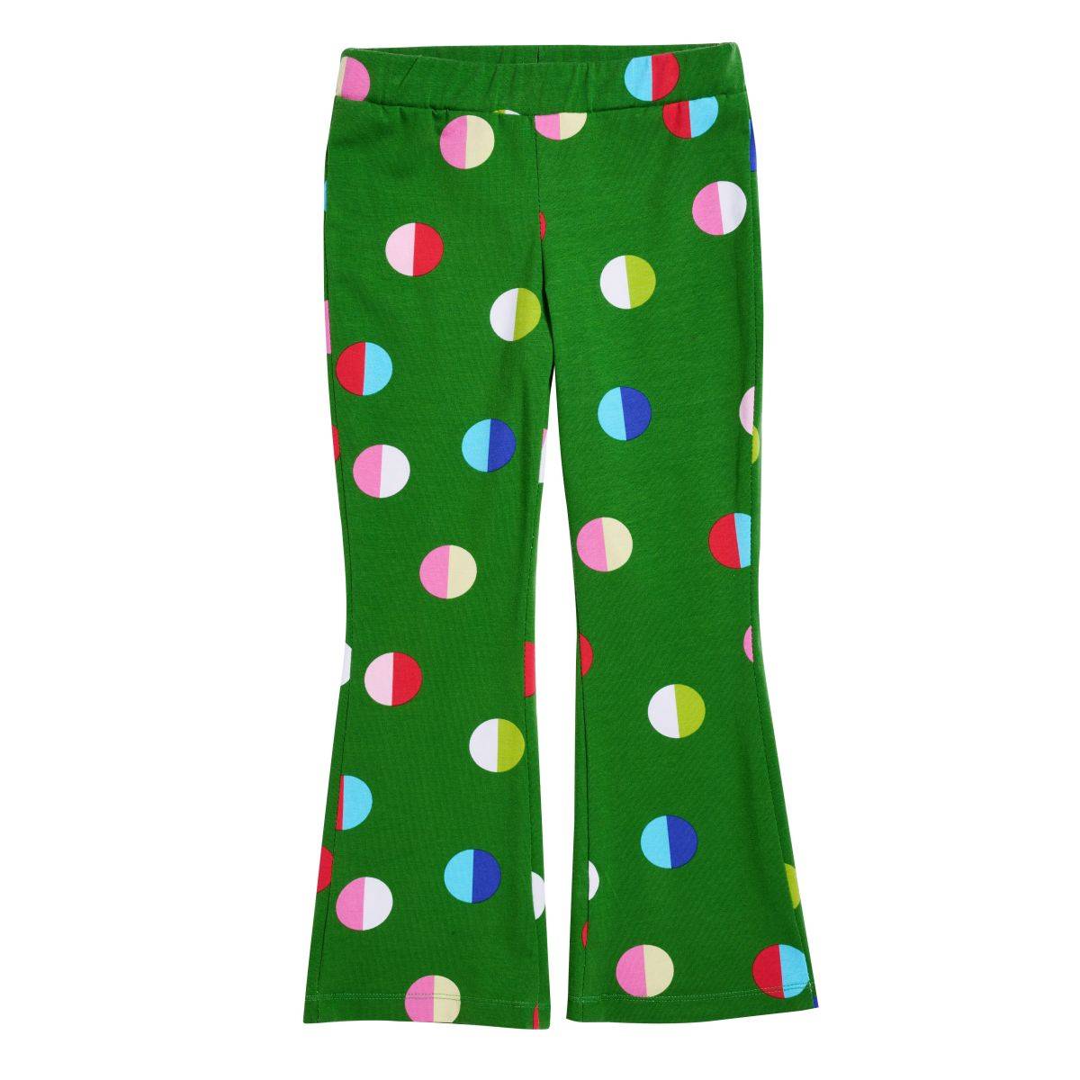 Colourful trouser variety for kids: The first lightweight green trousers with a slightly flared leg and colourful polka dots instantly lift the mood and are super comfortable to wear. The second pair, with a knee-skimming length and a wide stretch waistband, adds a chic touch thanks to its sporty yet elegant cut – paired with a delicate blouse, the playful look becomes beautifully refined. The third version, colourful leggings in a shorts style, can be perfectly combined with a plain top and simple trainers – ideal for summer adventures.