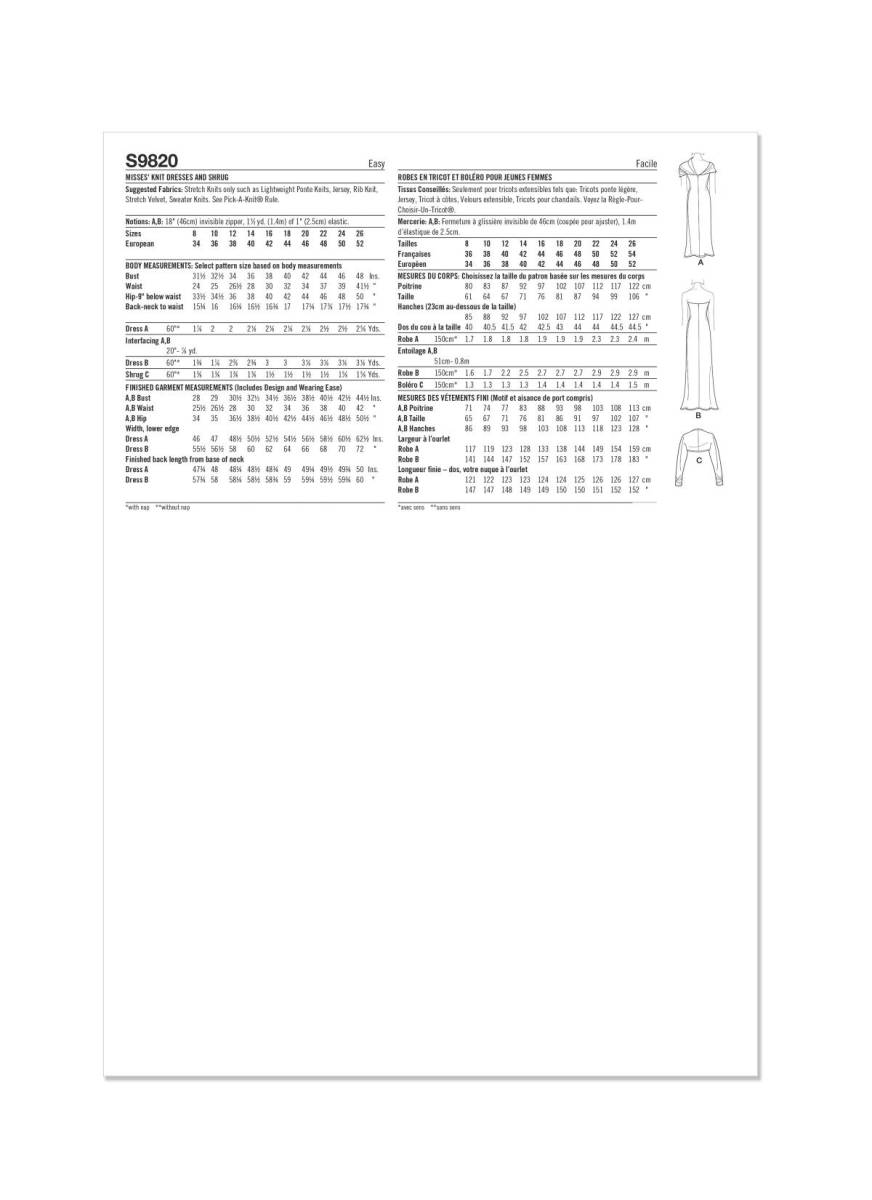 Misses' Knit Dresses and Shrug | Simplicity | 9820