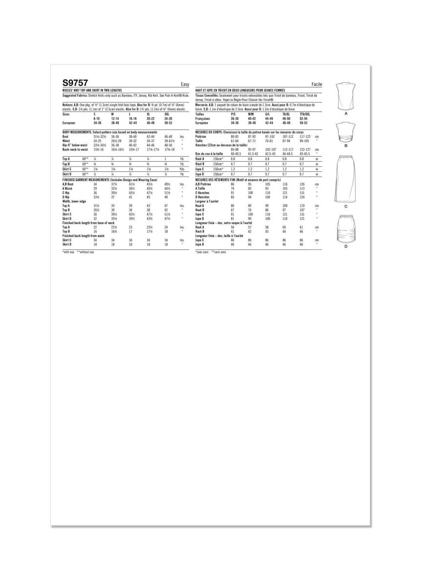 Misses' Knit Top and Skirt in Two Lengths | Simplicity | 9757