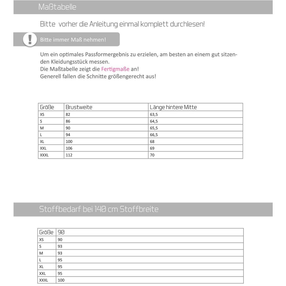 This set includes all pattern pieces in sizes XS–3XL, printed in color on a DIN A0 sheet, as well as a detailed, fully illustrated sewing instruction booklet in DIN A4 format. Our patterns are printed on a DIN A0 sheet. Depending on the number and size of the pattern pieces, they may overlap and need to be traced.
