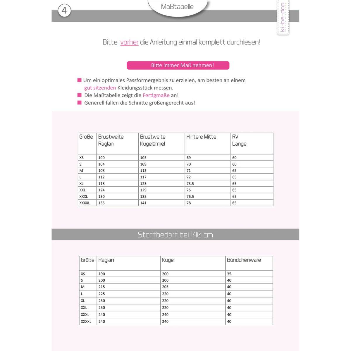 This set includes all pattern pieces printed in color on a DIN A0 sheet, as well as a detailed, fully illustrated sewing instruction booklet in DIN A4 format. The pattern is printed on a DIN A0 sheet; depending on the size of the pattern pieces, they may overlap and need to be traced separately.
