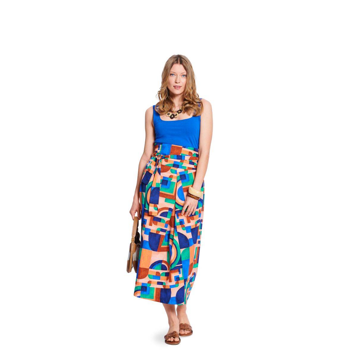 Complete your look with these refined pleated skirts! The first design is figure-hugging with deep box pleats, a high-cut waistband and leather ties that resemble slim belts – coolness guaranteed. The second style has the look of a wrap skirt thanks to its tie belt and deep pleat, yet it stays securely closed; an elastic band at the back ensures maximum comfort and adds a decorative touch. Perfect for stylish outfits with a special twist.