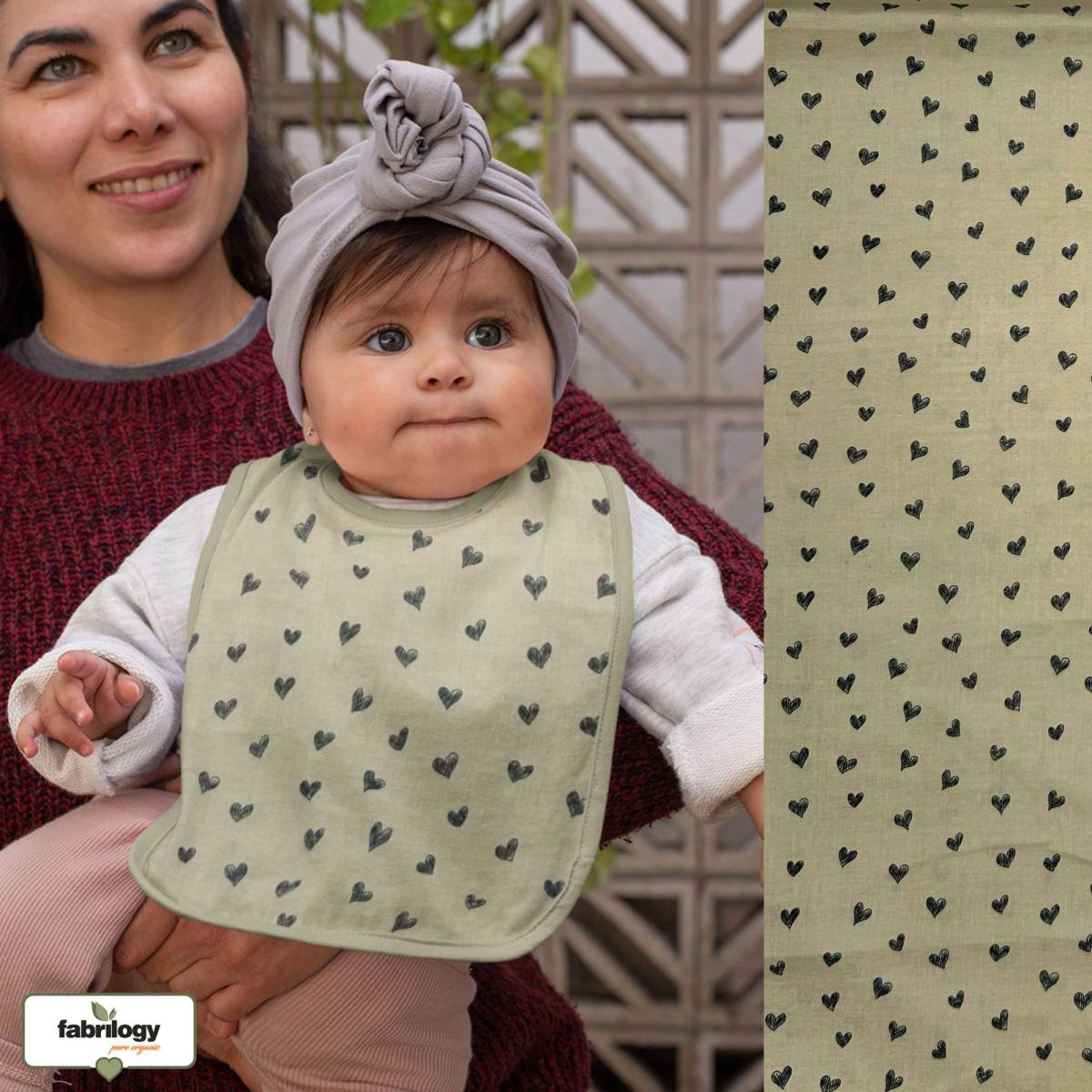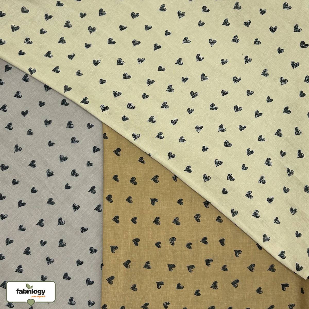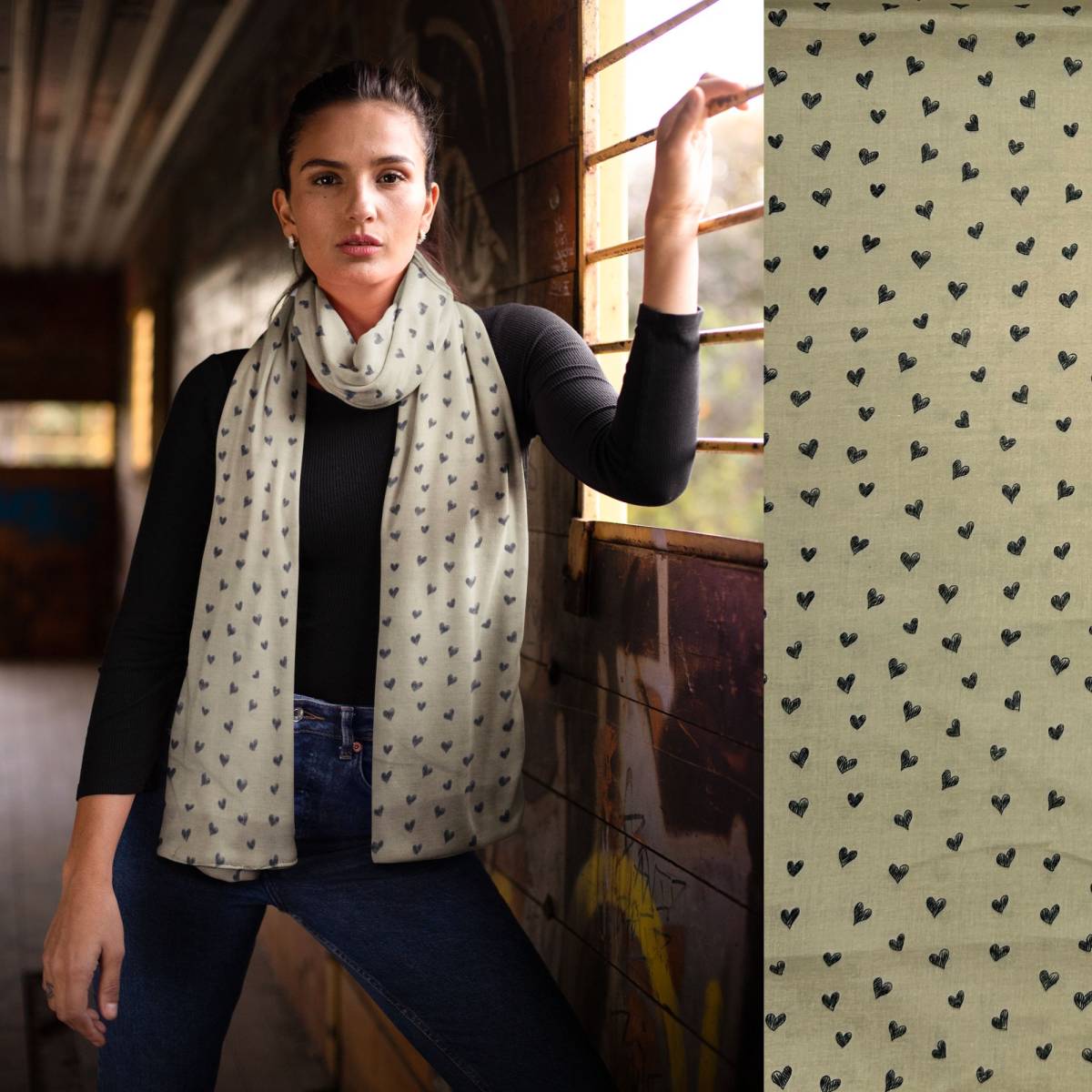 The charming hand-drawn heart pattern in subtle natural tones on a light sandy background makes this fabric the perfect choice for heartfelt creations. Whether for delicate clothing, baby items, scarves, or home textiles — this muslin inspires creative ideas. The fabric is non-stretch and features the typical loose weave, giving it its signature softly crinkled texture.