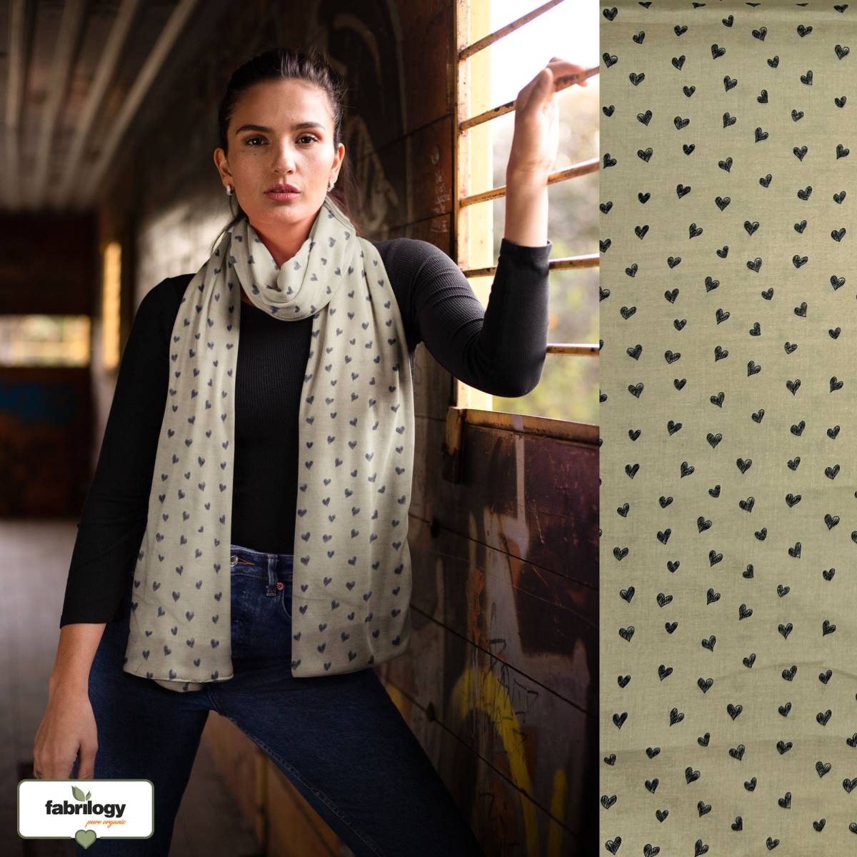 Our sustainable Muslin "Sketchy Hearts – Calm Sand" brings gentle elegance and playful lightness to your sewing projects. This fine, breathable double-layer fabric is made from 100% sustainable cotton and feels wonderfully soft on the skin.