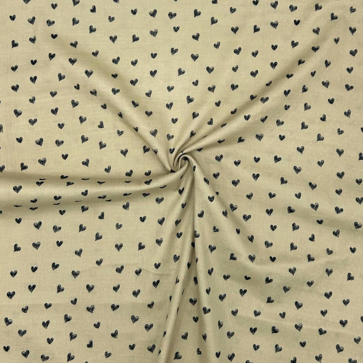 REMNANTS | 150 cm | Sketchy Hearts (Double Gauze flat) - ECO - Calm Sand