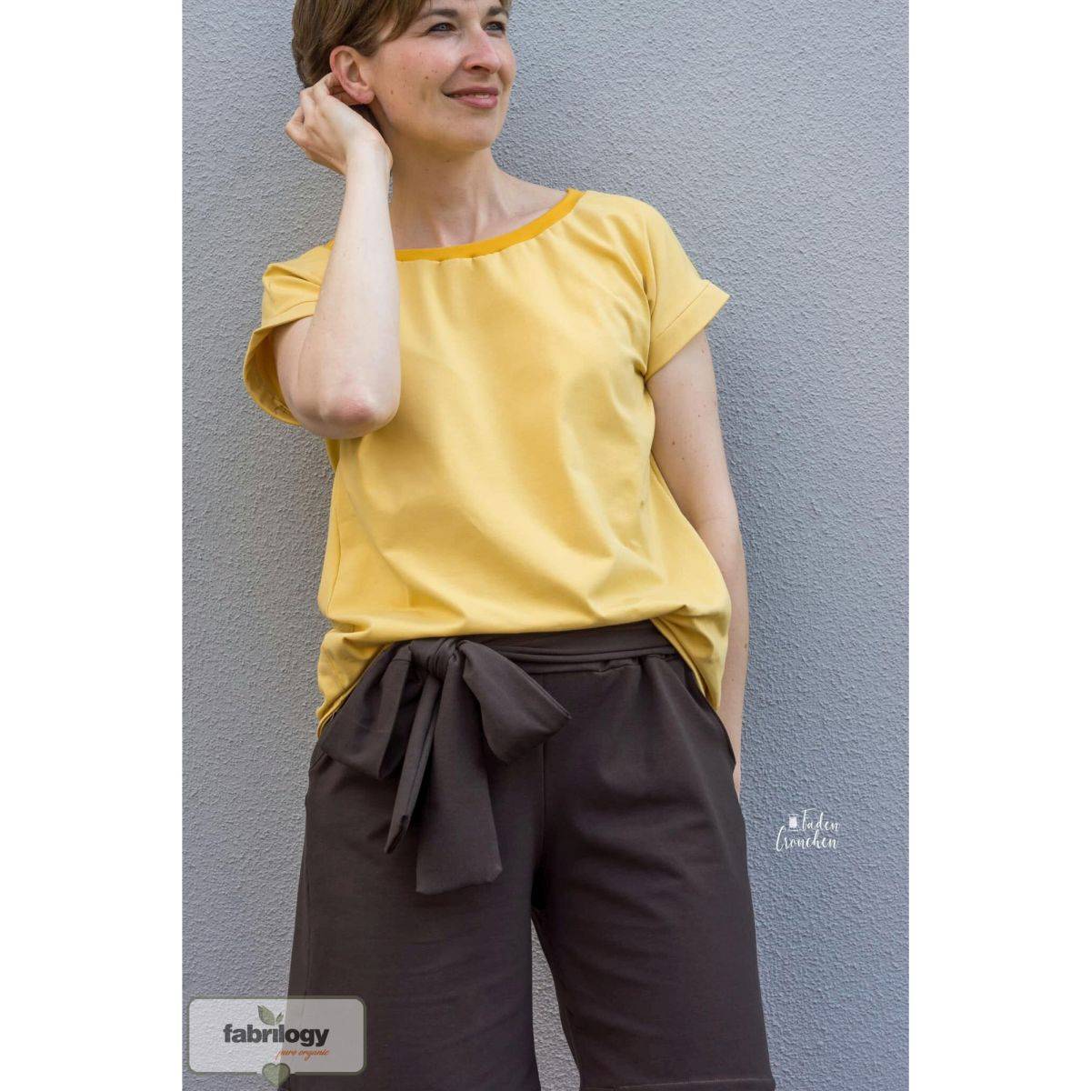 Our Organic Jersey - GOTS - certified - coffee is a cotton fabric with little spandex. It is breathable and absorbent at the same time. The jersey nestles fabulously soft to the body. For sensitive people it is well suited because it is very skin-friendly. Due to its stretchability, the fit is maintained and is perfect for everyday wear.