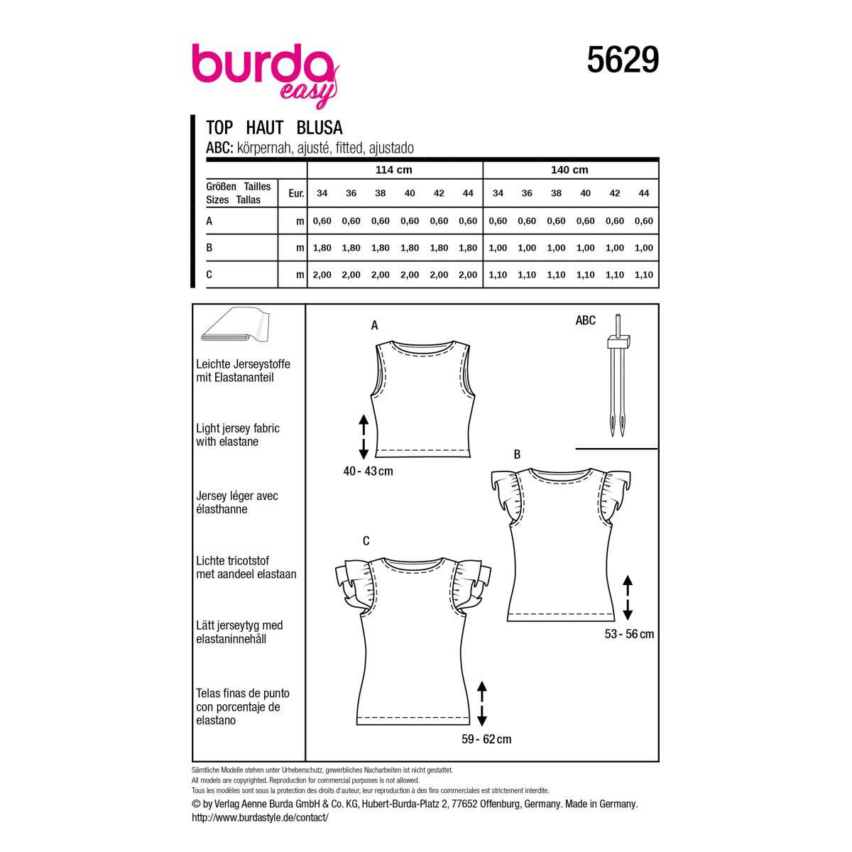 Recommended fabric:Jersey, lightweight fabric