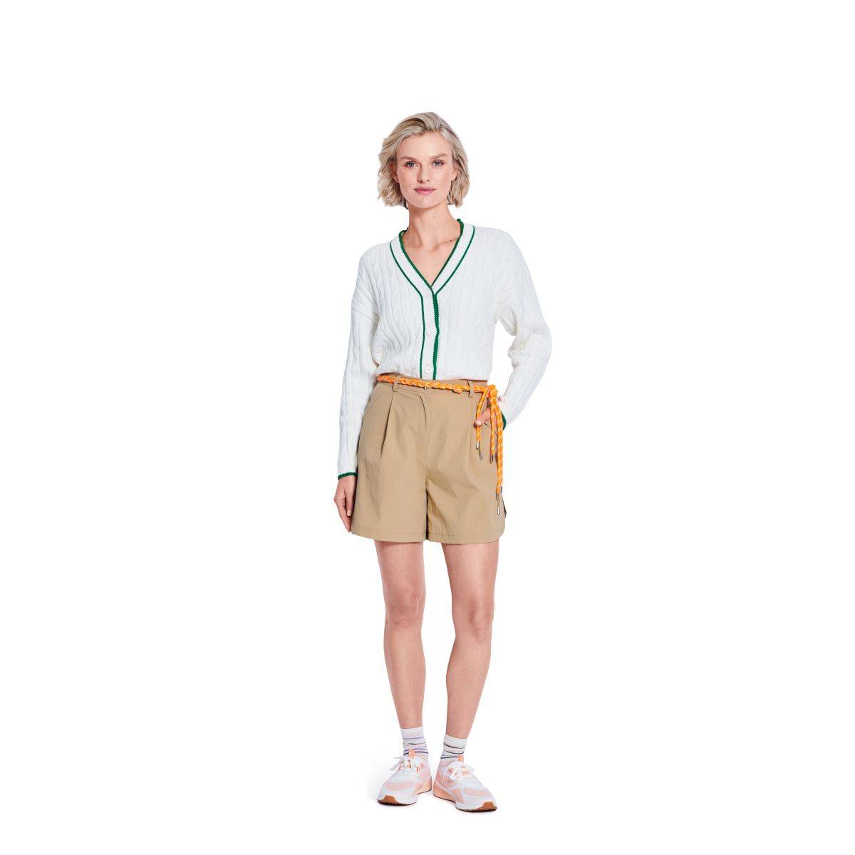 Where elegance meets ease: The wide-cut Bermuda shorts with belt loops, hip welt pockets and classic pressed creases are the trend piece of the season – and can already be styled perfectly with boots. For a sportier take, the second version features shorts with rounded hem slits and a braided belt, adding a fresh athleisure vibe to any wardrobe – a highlight for versatile summer looks.