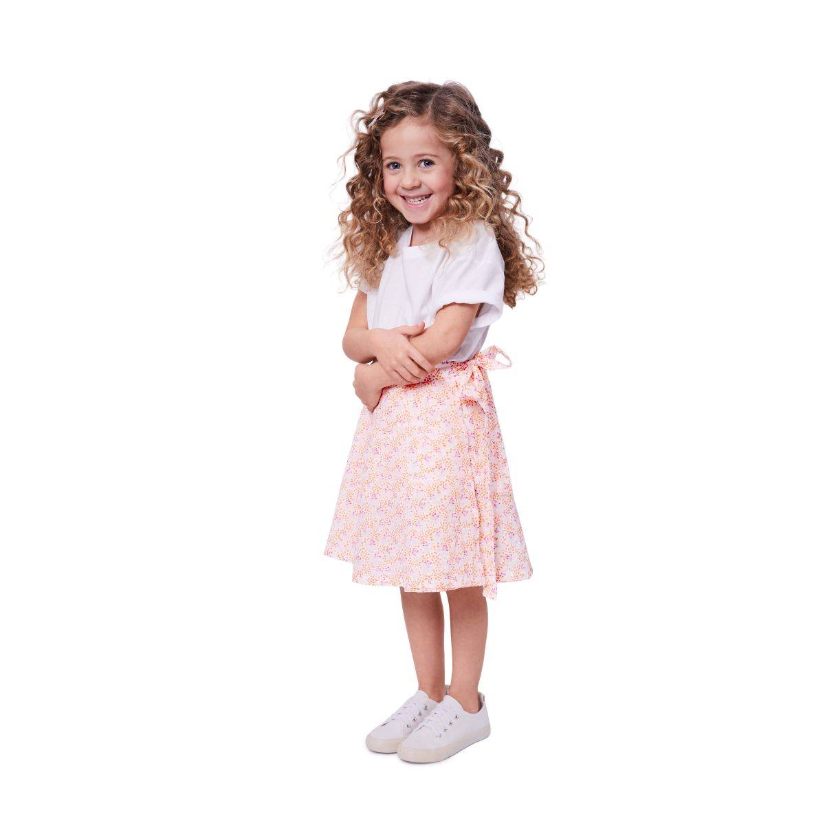 Summery wrap skirts for little fashionistas: The first skirt charms with playful florals, is comfortable enough for playtime and is even available in mum’s size. The second version features a gently ruffled hem and a pretty bow – a summer favourite that perfectly combines grace and ease.